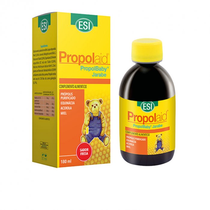 Jarabe de Própolis, Equinácea, Acerola y Miel con sabor a fresa, ideal para combatir los síntomas del resfriado.